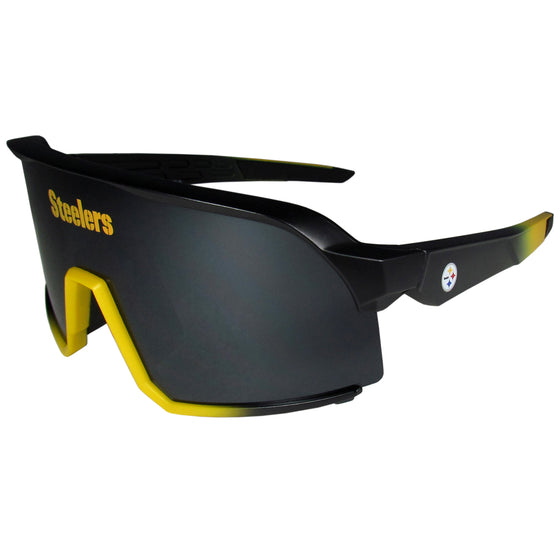 Discover our stylish wraparound sunglasses designed for optimal comfort and protection. These shades conform closely to your face, offering an extended field of view while ensuring frame stability and impact resistance. Featuring a mirrored lens, they effectively reduce glare and provide top-tier UVA/UVB protection. Show off your team spirit with the Pittsburgh Steelers logo on the arms and the team name boldly displayed across the lenses, making these sunglasses a perfect accessory for fans. Enjoy style and performance in one great pair of shades.