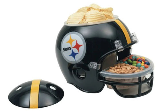 These helmet snack bowls are perfect for game day parties! It has many great uses: ice bucket, chips and dip, candy dish, cookie jar, relish tray, even a planter! This is a great gift idea for yourself or your favorite sports fan. The helmet itself is about 9" tall. The snack bowl includes a removable plastic compartment that fits inside the top of the helmet and a removable divided dish that fits into the faceguard. Both are dishwasher and microwave safe. Made by WinCraft. Made By Wincraft, Inc.