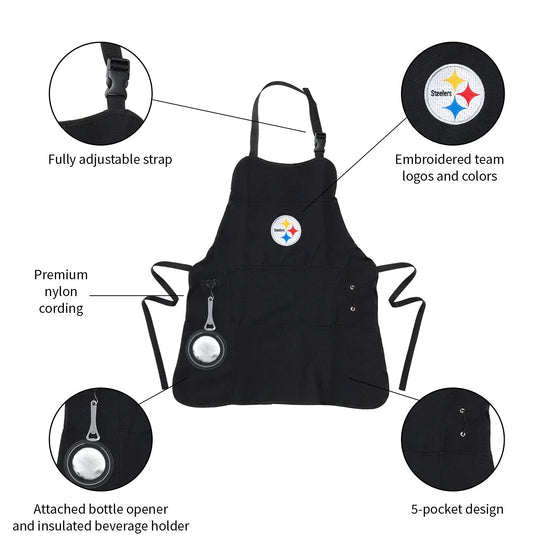 - ENJOY GAME DAY THE RIGHT WAY: Insulated bottle or can holder built into the apron. Embroidered team logo on the chest pocket.