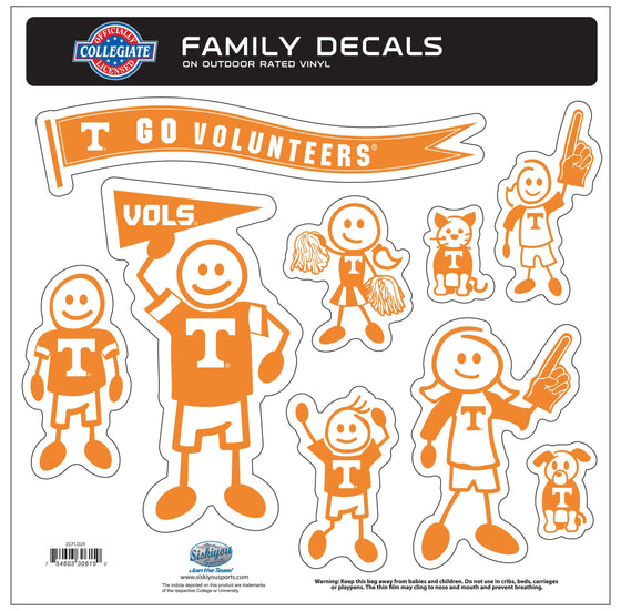 Show your team spirit with our Tennessee Volunteers Family Automotive Decals, the perfect sports gift for any fan! This set includes nine individual family-themed decals, each proudly displaying the Tennessee Volunteers logo. Measuring 11 x 11 inches, these decals are crafted from outdoor-rated, repositionable vinyl for long-lasting durability and easy application. The largest decal stands an impressive 6 inches tall, making it a standout addition to your vehicle or home windows. Officially licensed and made by Siskiyou Gifts, these Tennessee Volunteers decals are essential for any sports memorabilia collector. Visit 757 Sports Collectibles for more unique sports collectibles and gifts that showcase your passion for your favorite team!