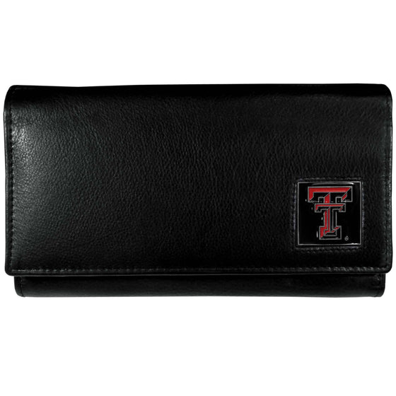 Highlighting the Texas Tech Raiders, the pocketbook boasts a hand-painted metal emblem in team colors, making it a standout piece for any sports memorabilia collector. Whether you're at the game or running errands, this chic wallet offers a perfect blend of utility and style.