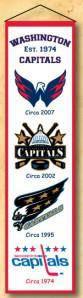 These uniquely shaped vertical banners chronicle the evolution of select logos or mascots through the years. Each logo is identified with a circa date connecting each to a specific time period. Each banner is constructed with applique and embroidery detail on a heavy wool blend fabric, providing a vintage feel and look. Each banner measures 8" wide x 32" long and includes a hanging cord for easy display. Made By Winning Streak Sports