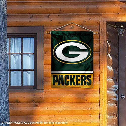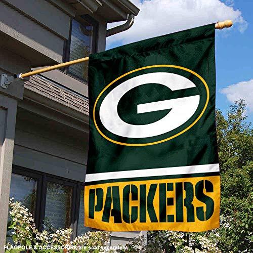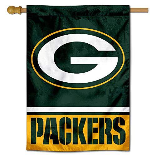 Details: Our House Flag for Green Bay Packers measures 28" x 40" in size, has a Double Stitched Perimeter, is made of 2-Ply Polyester with sewn-in liner, has Double Sided Screen Printed logos, and has a 3" top pole sleeve to slide over your flagpole or banner pole. This Flag, Banner or Pennant is Viewable and Readable Correctly on Both Sides and is League Genuine Merchandise and licensed by Team which ensures a quality item, hologram packaging, authentic logos, and genuine team colors.