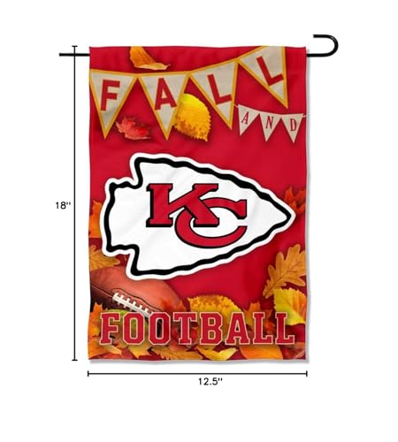 Details: Ideal for your garden or home entrance is our Officially Licensed Fall Football Decorative Seasons Logo Garden Flags. This double sided League Garden Flag measures a large 12.5" x 18", has a Double Stitched border, a 1.5 inch top sleeve, and is made of 2 ply Polyester with liner so the logos are Viewable and Readable Correctly on Both Sides. The Screen Printed team logos are Officially Licensed and Approved by the League and team. (Flag Only, Accessories Sold Separately)