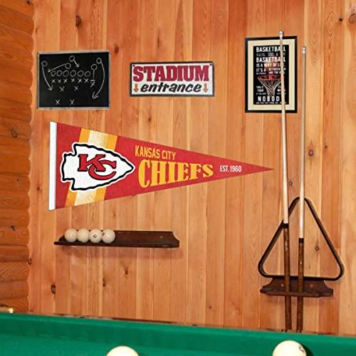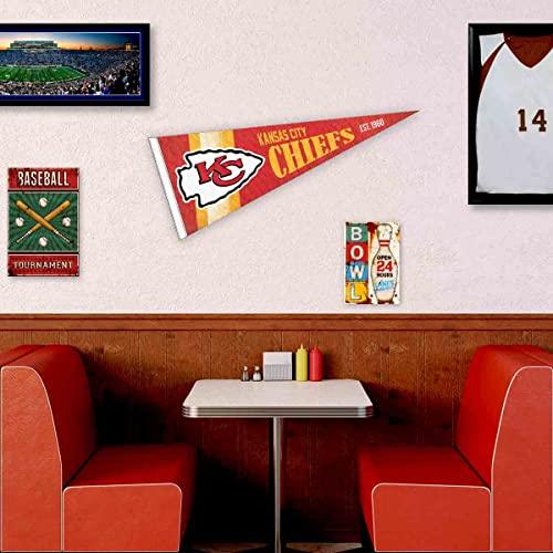 Details: Our sports pennants are a great way to show your allegiance in your sports room, game room, office, bedroom, or any room by displaying on any wall as a banner. They measure a full size 12" X 30", are made of soft Felt Blend, and are single-sided Screen Printed with the insignias and logos, as shown. Each pennant is Officially Licensed by the selected institution which insures current insignias, wordmarks, and authentic colors. The pennants also include a pennant sleeve on the left side which can be used to insert a pennant stick, if desired. Please Note Image Details. Team logo, insignia, lettering, and pennant backgrounds are realistically printed to replicate a vintage, retro, and throwback appearance.