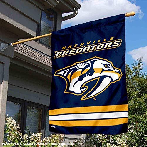 Details: Our House Flag for Nashville Predators measures 28" x 40" in size, has a Double Stitched Perimeter, is made of 2-Ply Polyester with sewn-in liner, has Double Sided Screen Printed logos, and has a 3" top pole sleeve to slide over your flagpole or banner pole. This Flag, Banner or Pennant is Viewable and Readable Correctly on Both Sides and is League Genuine Merchandise which ensures a quality item, hologram packaging, authentic logos, and genuine team colors.