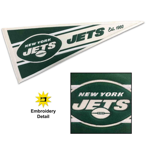 Details: Our Pennant is a quality collectible and is a unique way to display your team allegiance as a banner in your game room, office, kids bedroom, or on any wall. These team pennants measure a full size 12 in X 30 in, are made of Thick Wool, and are single-sided Embroidered and Stitched with Licensed insignias and logos, as shown. Each Wool Pennant is Officially Licensed and is Team, College, or University Approved which insures current insignias, wordmarks, and authentic colors. These pennants also include a sewn strip on the left side and feature a full perimeter sewn wool border.