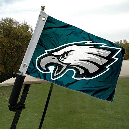 Details: This Philadelphia Eagles Golf Cart and Boat Flag measures 12" x 18" in size, has Quadruple Stitched flyends, is made of 2-ply Polyester with sewn-in liner, includes Screen Printed logos, and has two Metal Grommets for attaching to your boat mount, golf cart pole, motorcycle mount, or any of your uses. These small flags are League Officially Licensed and the logos are Viewable and Readable Correctly on Both Sides.
