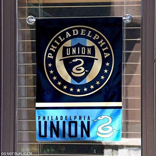 Details: Perfect for your garden or home entrance is our Flag, Banner or Pennant. This double sided League Garden Flag measures a large 12.5" x 18", has a Double Stitched border, a 1.5 inch top sleeve, and is made of 2 ply Polyester with liner so the logos are Viewable and Readable Correctly on Both Sides. The Screen Printed Philadelphia Union logos are Officially Licensed and Approved by the League and Team, College, or University Approved. (Flag Only, Accessories Sold Separately)