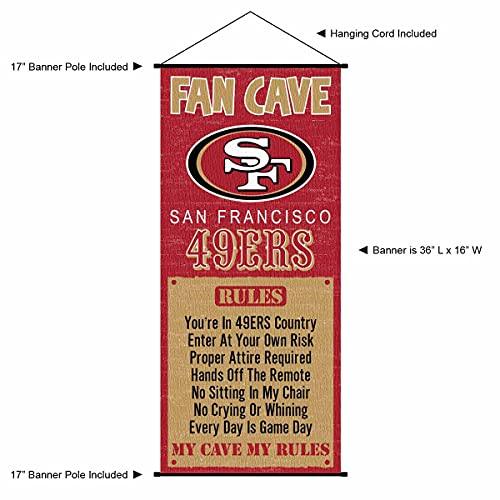 Details: This Man Cave Fan Banner Scroll has an overall dimension of roughly 17.5" wide by 36" in length. The Ready to Hang banner is made of 300D Thick Polyester and has a fabric width of 16" x 36". The top and bottom PVC banner poles are included and each measure 17.5" wide and have a diameter of .75 inches. In addition, a sturdy black hanging cord is included. Our large Door Banners are Officially Licensed and Team Approved and the single-sided Screen Printed logos are Viewable on One Side. This banner is high quality fan item which can be used as canvas art, poster, or sign for any room, wall, door, and a perfect gift idea for any fan.