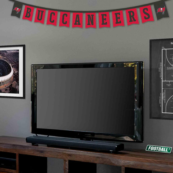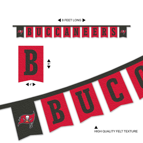 Details: These Small Banner Pennant String Flags are made of Rigid Polyester Felt and each letter banner measures 6 (height) x 4 (width) inches. The total pennant string length is 8 feet, each banner has extra headband length for tying-up the pennants. The banners are screen printed and the team logos, slogans, and workmarks are printed and viewable on one side. Great to decorate indoor or outdoor and any room, man cave, tailgate canopy, railing, kids room border, or tailgating event. These banner flags on a string are Officially Licensed and Team, School, University or College Approved.